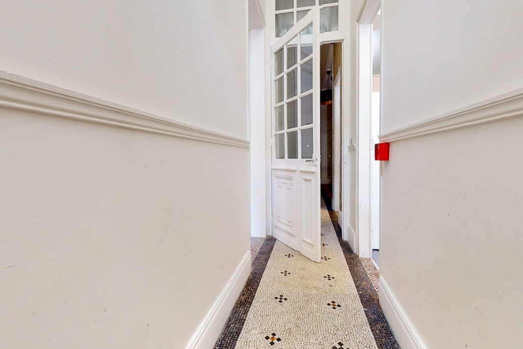 La porte d’entrée de cette maison s’ouvre sur un couloir qui dessert deux chambres au RDC ainsi que les parties communes de la maison.
