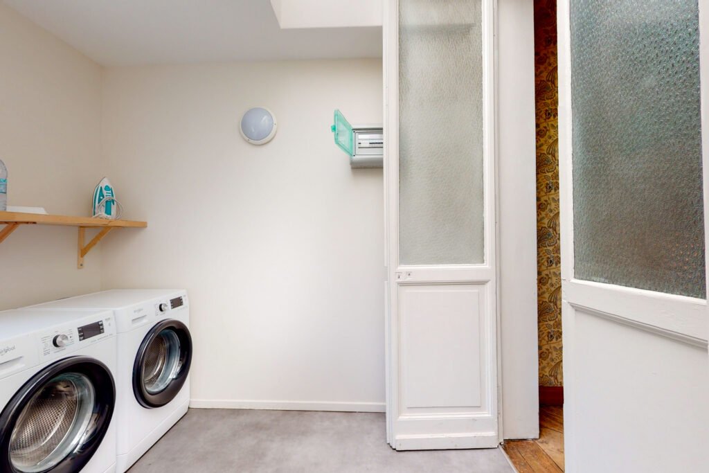 Un espace buanderie avec machines à laver, et sèches lignes est présent au 1er étage de la maison.