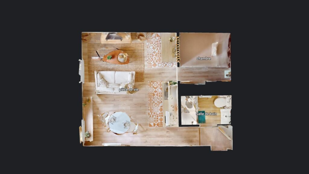 🌛Le coin nuit semi-ouvert sur la pièce de vie est composée d’un lit double, d’une table de chevet et enfin d’un placard.