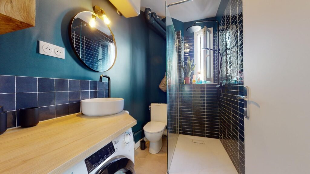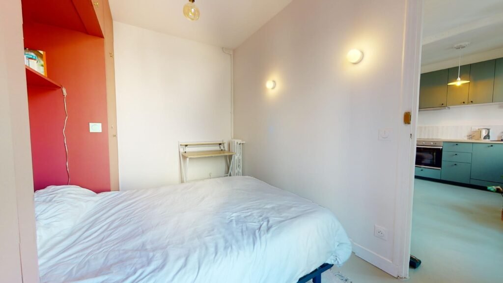 L’appartement, récemment rénové, se compose d’une cuisine très bien équipée (réfrigérateur, four, plaques de cuisson, hotte, lave-vaisselle, placards de rangement, etc.), d’un agréable salon (canapé, table basse, meuble, étagères, etc.), d’une salle de bain et d’une chambre séparée. Celle-ci dispose d’un lit double, d’un bureau, ainsi que de nombreux rangements. La salle de bain se munit d’un meuble vasque, d’une machine à laver, d’un WC, d’une douche et d’un sèche serviette.