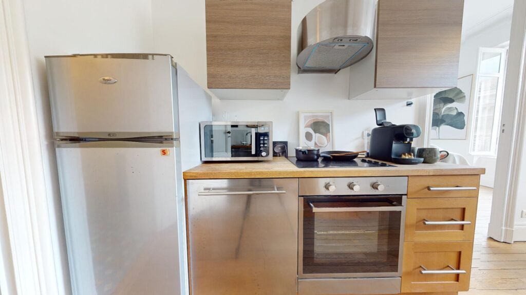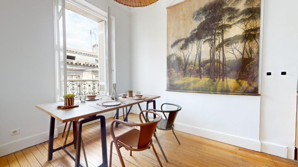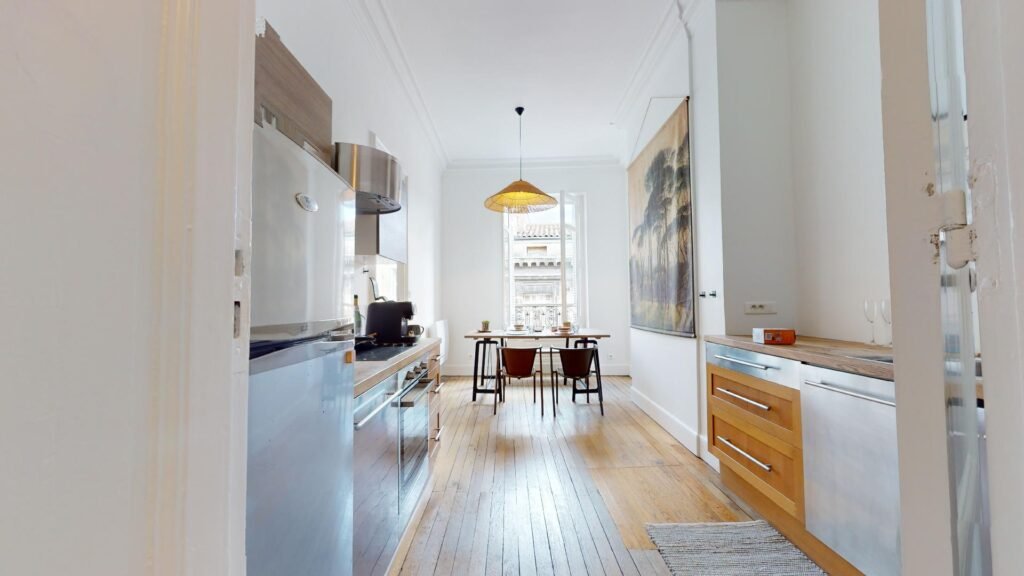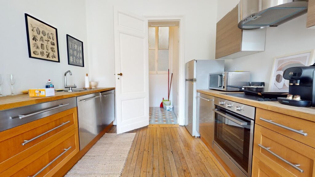 L’appartement est un bien rare, avec hauteur de plafond et mobilier de standing. Il se compose d’une entrée, d’un grand séjour, d’une cuisine disposant d’un espace salle à manger, d’une grande salle de bain avec espace buanderie et de deux chambres.