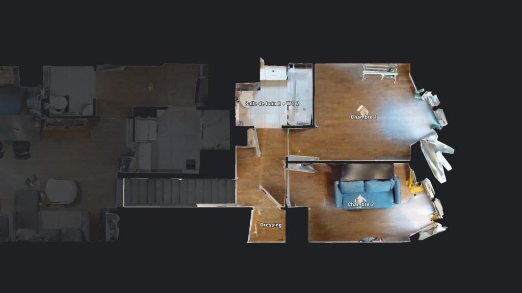 Le second étage est doté de deux chambres. La plus grande est à meubler. La seconde est composée d’un canapé convertible ainsi que d’une armoire et d’une télévision. Elles bénéficient d’un bel apport lumineux par leurs grandes fenêtres.